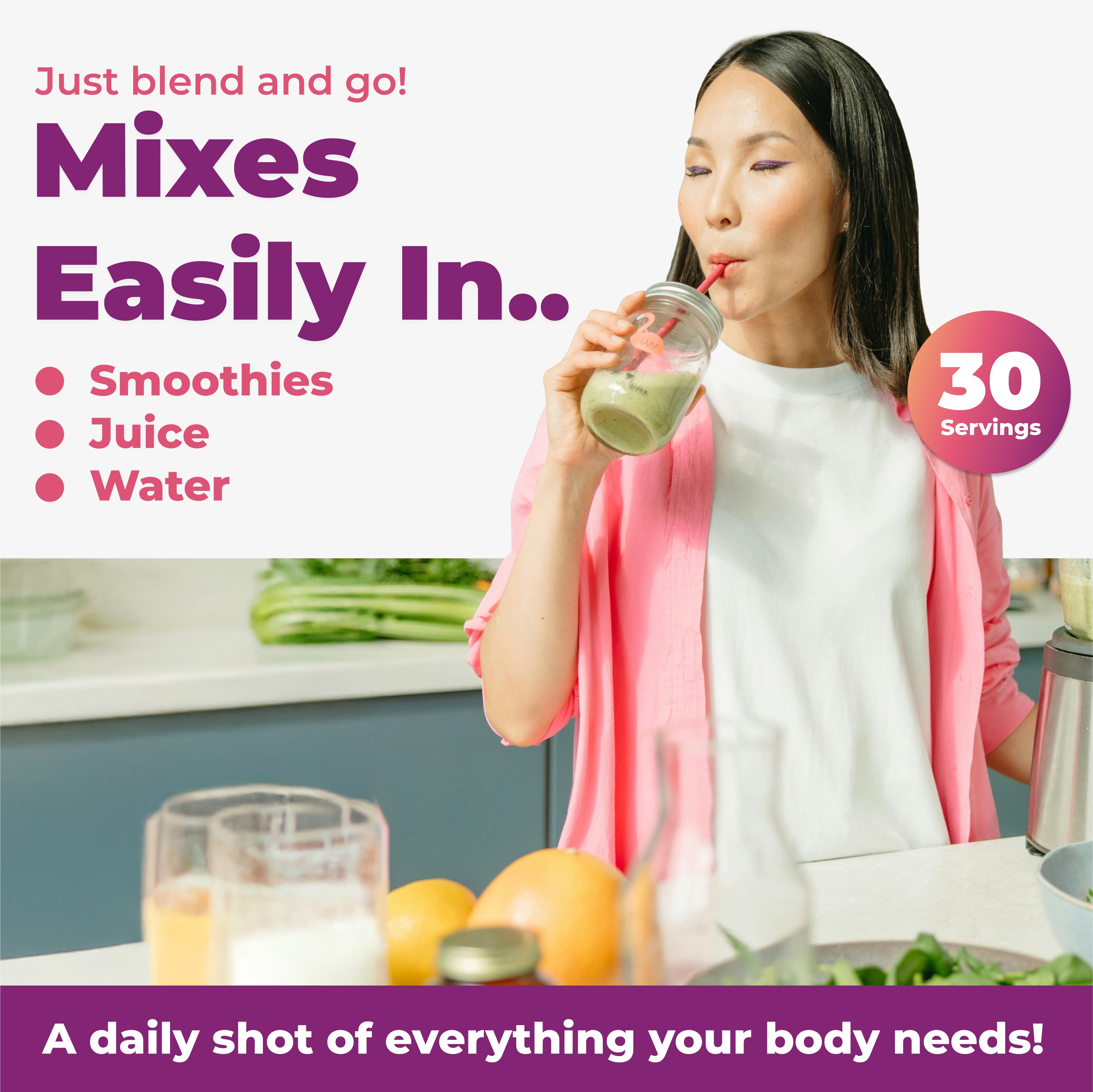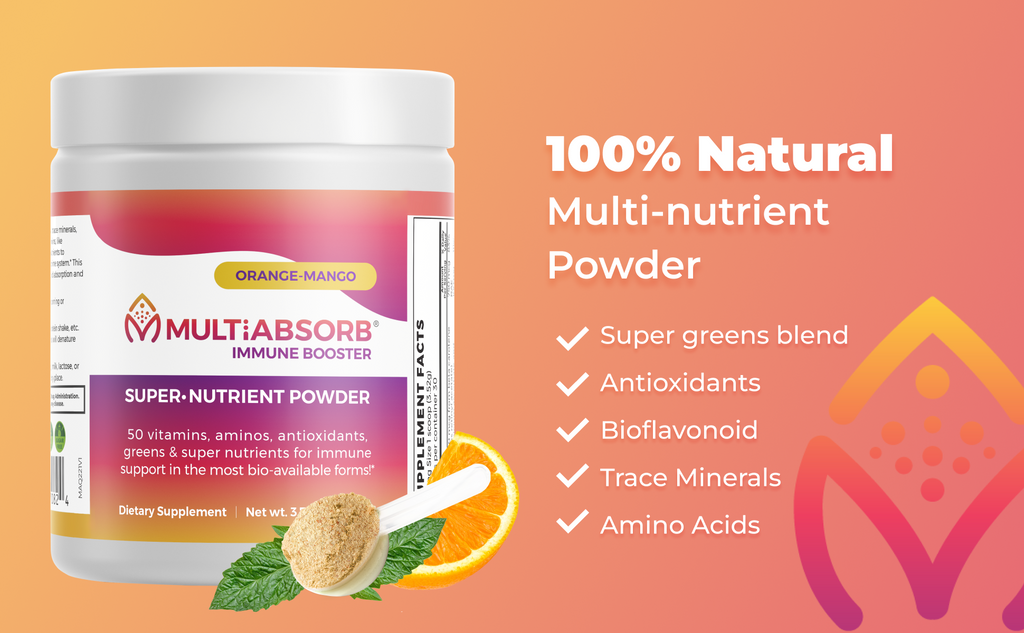 If you want to make sure you’re getting a daily shot of everything your body needs, then MultiAbsorb Immune Booster is a great supplement you can add to your daily juice, protein shake, or smoothie.