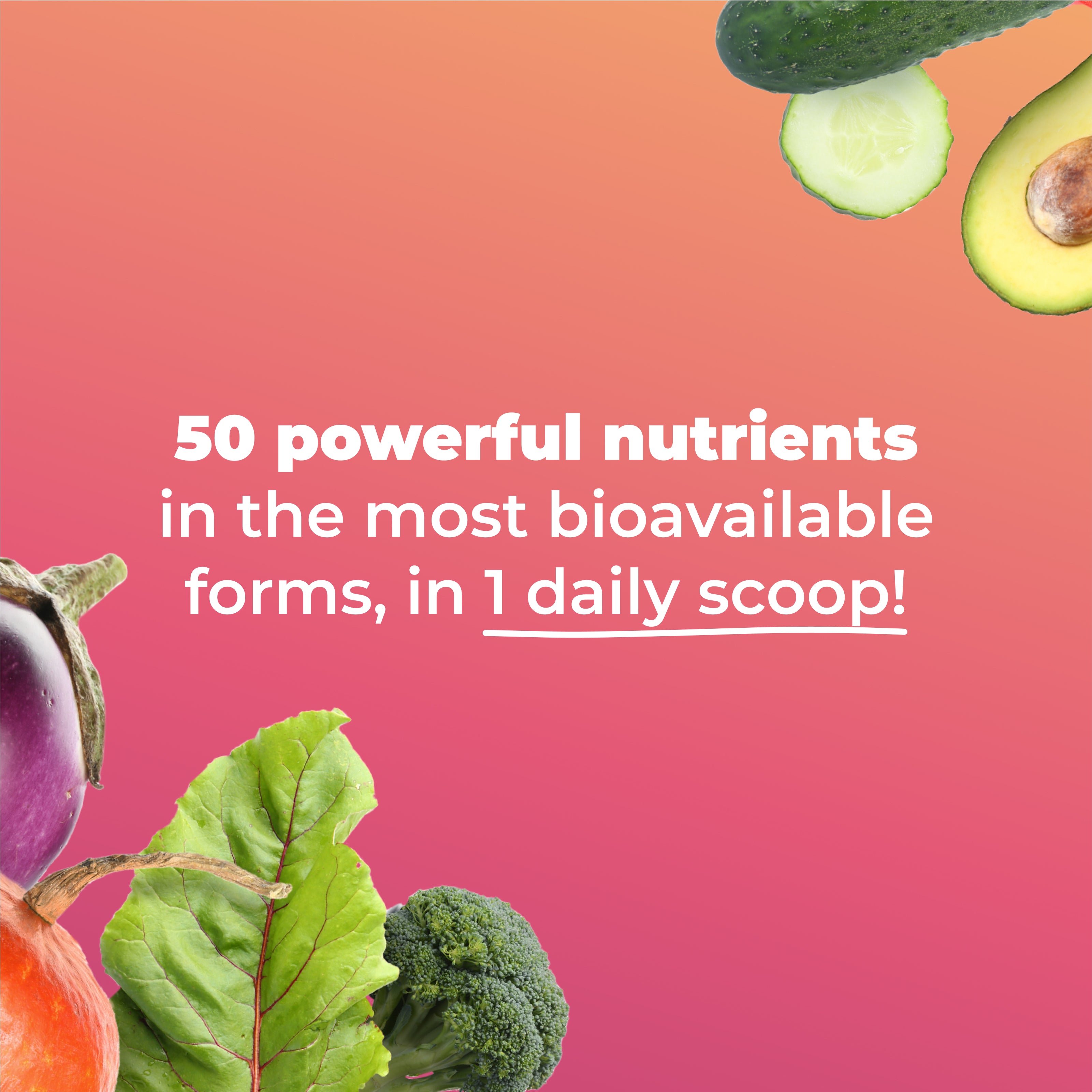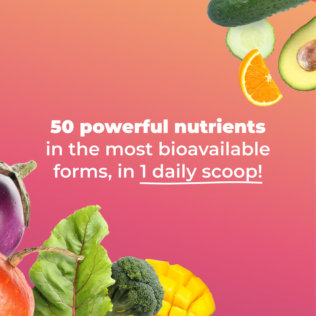 50 targeted super nutrients in therapeutic amounts, in 1 daily scoop!