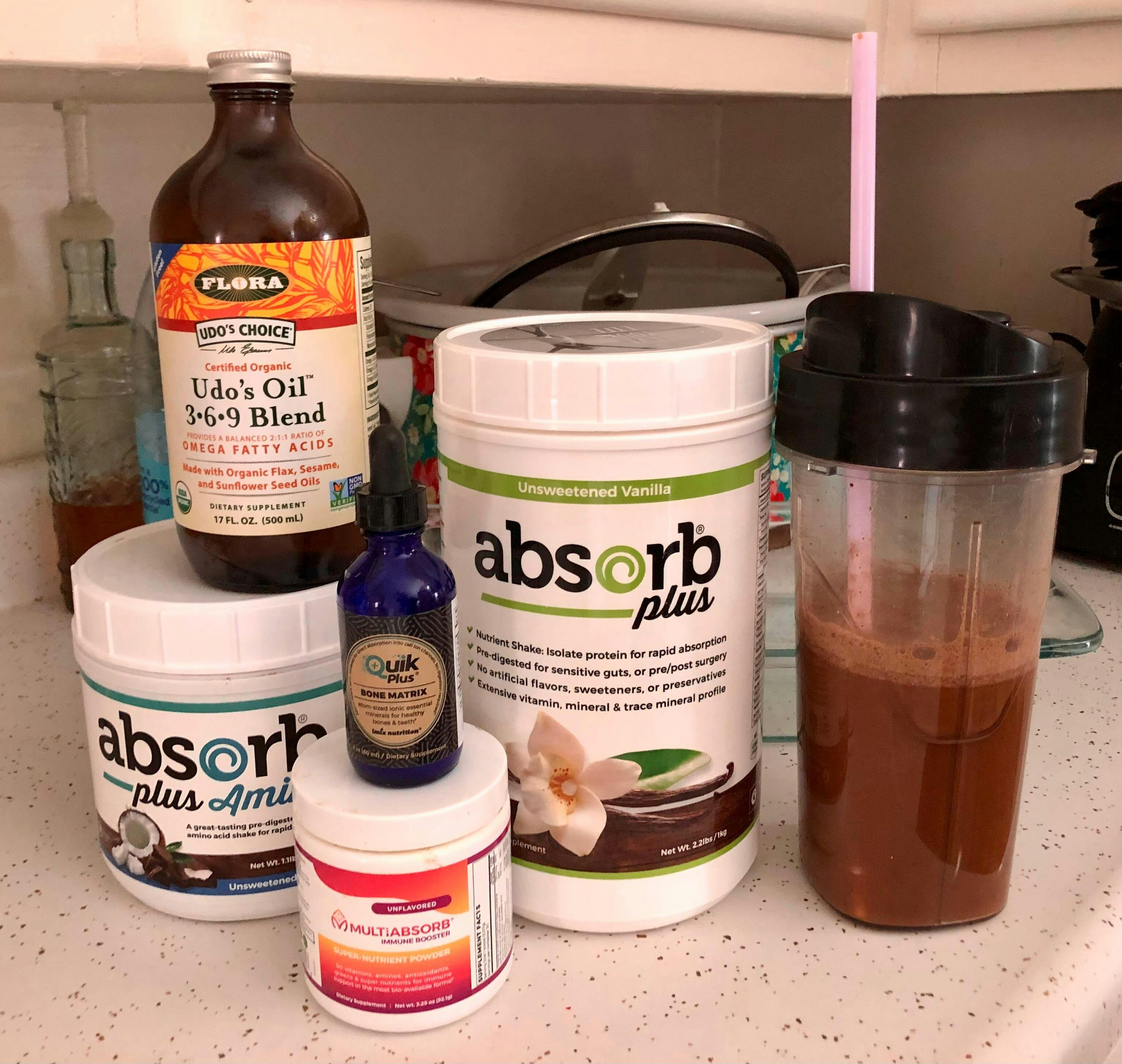 Absorb Plus Amino was formulated by colon and bowel disorder expert Jini Patel Thompson to provide maximum nutrition to help build and strengthen your immune system and allow you to maintain or gain solid weight (muscle, not fat). Absorb Plus Amino provides nutrients, supplements, free-form amino acids, and carbohydrates (organic tapioca maltodextrin - from cassava root) in the most desirable forms and proportions, and in ratios that allow for optimum use and absorption. This liquid diet protein shake also includes an extensive array of therapeutic free-form amino acids, with a superior vitamin and mineral profile (including trace minerals).